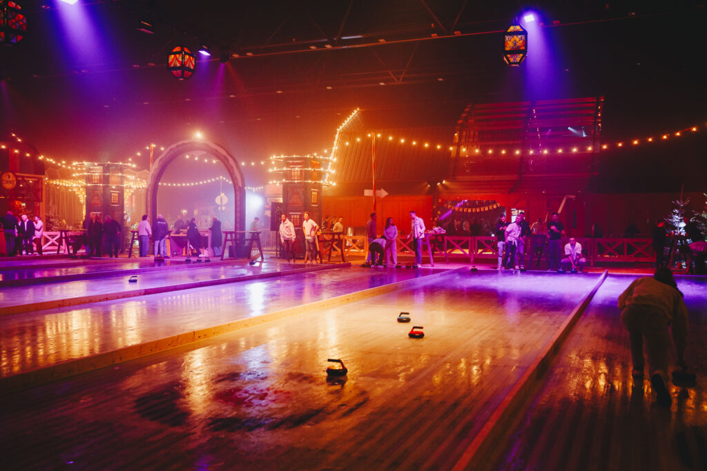 Stap met je team in een winterse wereld vol verrassende activiteiten: zing je longen uit bij de karaoke, laat je schaatskunsten zien op de ijsbaan, of ga de uitdaging aan tijdens een potje curlen.